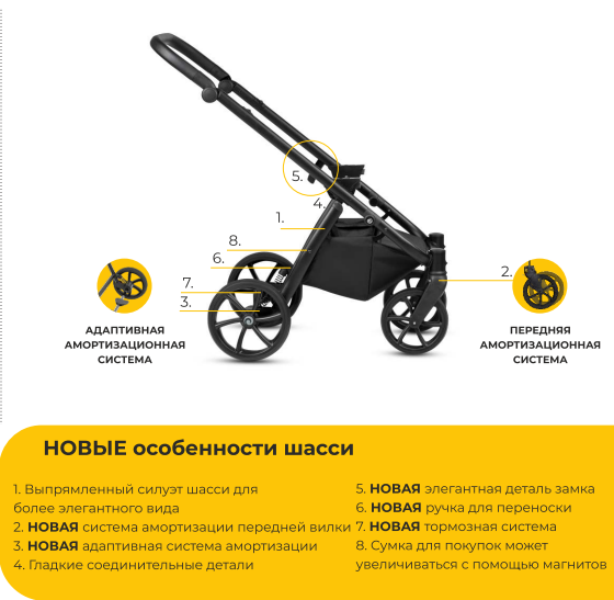 Каждое заднее колесо оснащено независимой системой Adaptive Shock Absorption, которая поглощает микровибрации и неровности дороги. Это гарантирует мягкий ход даже по брусчатке или грунту.